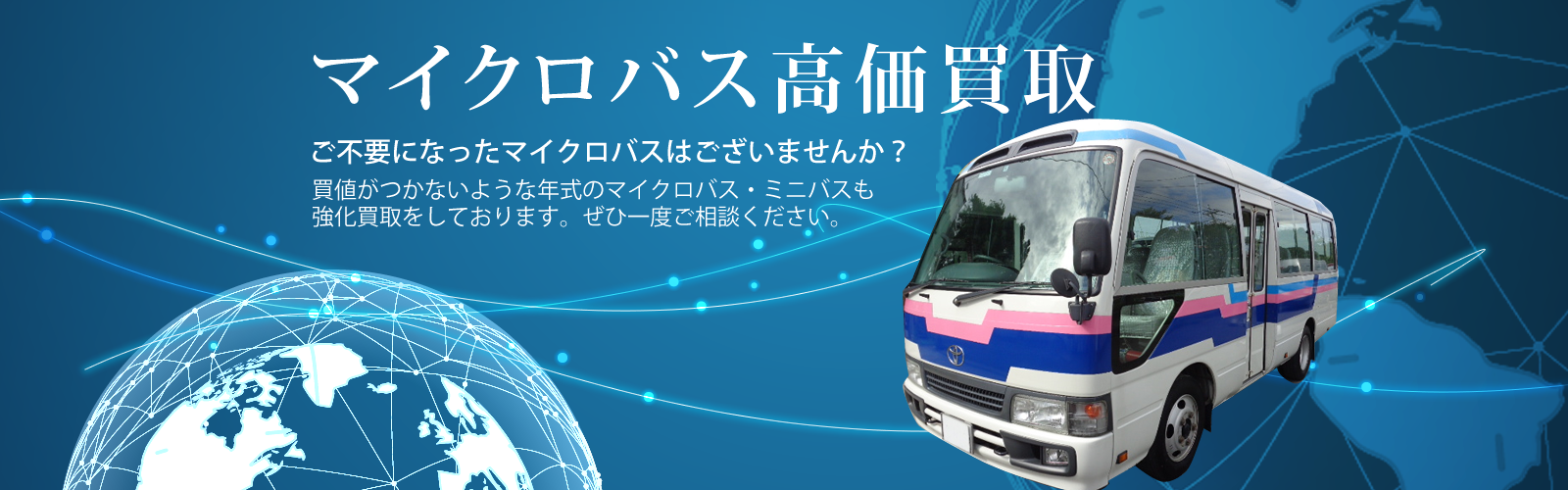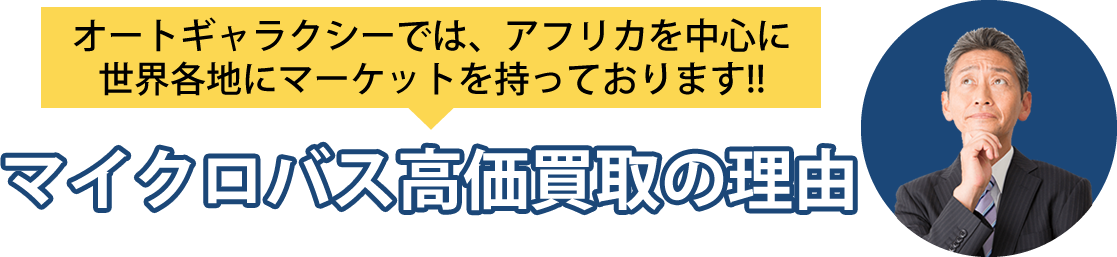 “不要になったお車”というのは、中古車業者の立場からすると、買い取ったとしても売ることができない。または、売れたとしても殆ど利益にならない、そんな車のことを指します。オートギャラクシーでは、アフリカを中心に世界各地にマーケットを持っています。 日本製の中古マイクロバス・ミニバスは、車検点検などメンテナンスがしっかりしているため、年式が古くても海外では大変人気が高く現地では需要があるのです。 このように、海外に直接販売チャンネルを持っている弊社だからこそ、多少古いマイクロバス・ミニバスでも高く買い取らせて頂くことが可能なのです。