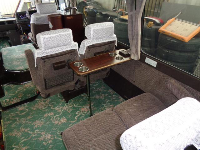 | 装備 | エアコン パワーステアリング TV CDプレーヤー カーナビゲーション ETC 冷蔵庫 ポット 荷物棚 リクライニングシート 自動ドアー(グライド、折り戸) エヤーサスペンション バックモニター ハイルーフ アルミホィール |